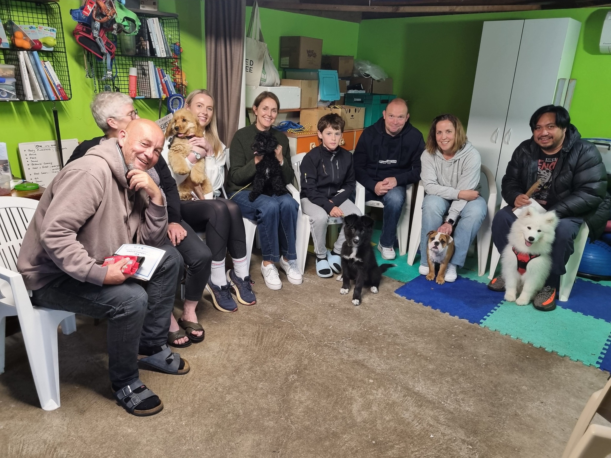 5 x weekly classes run midweek evenings in the Summer and Sunday morning/afternoon in the winter. This enables the puppies to have fun puppy play outside in the backyard. (First session, humans only).