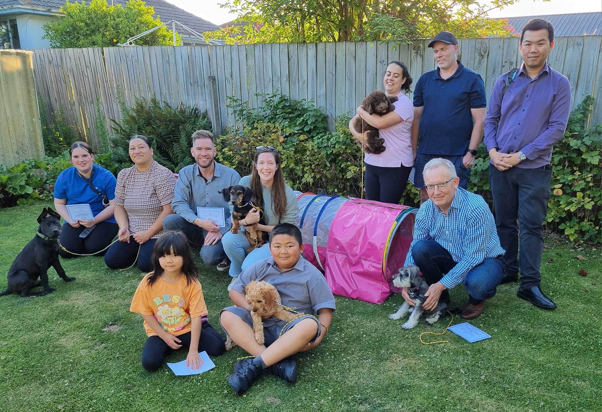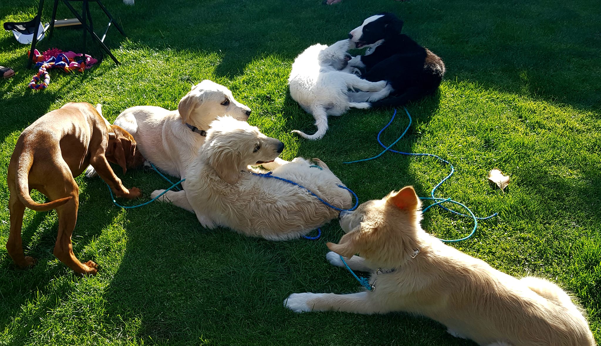 5 x weekly classes run midweek evenings in the Summer and Sunday morning/afternoon in the winter. This enables the puppies to have fun puppy play outside in the backyard. (First session, humans only).