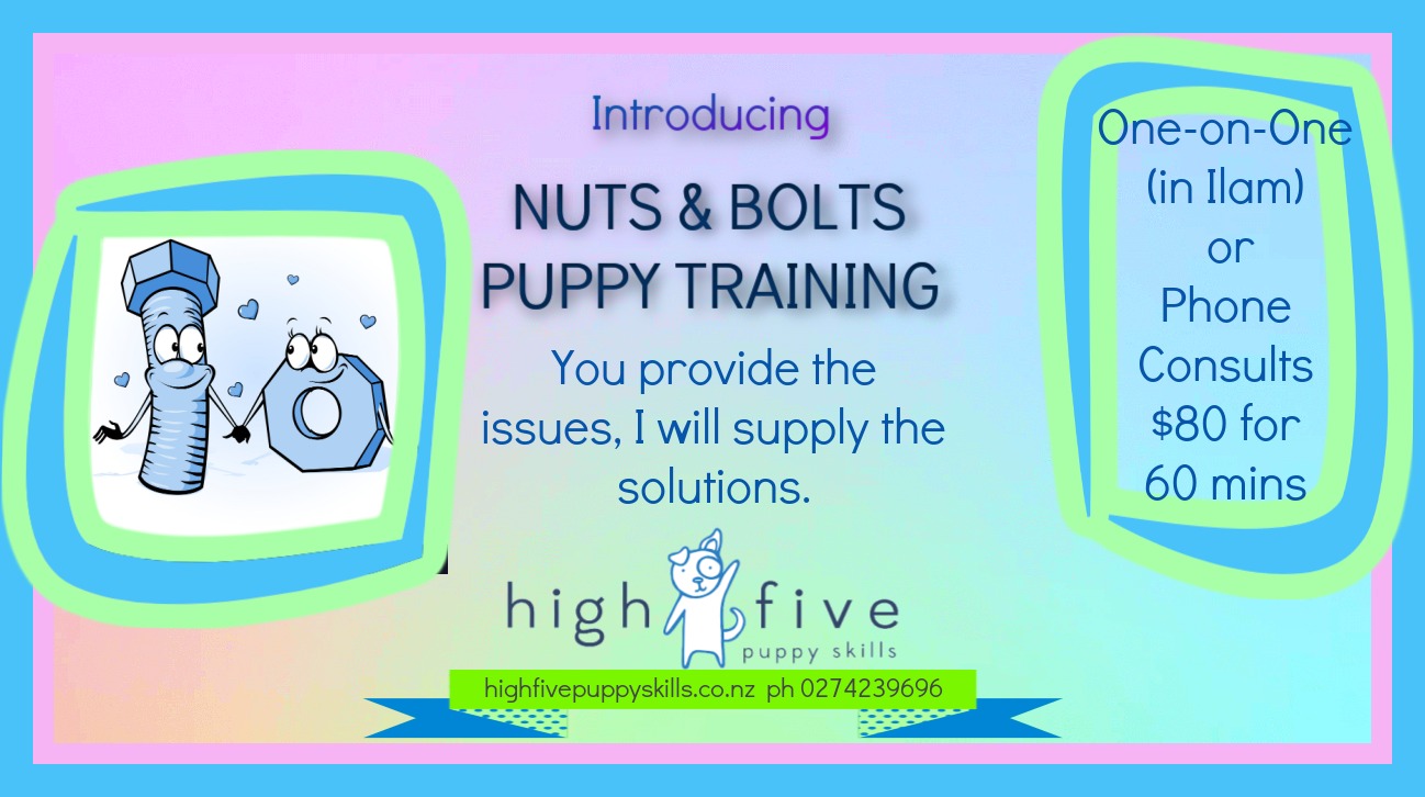"Nuts & Bolts" Individual session which covers the basics of dealing with Puppy Issues. You tell Margaret the issues and she will give you the solutions. A one hour session, in person or phone.